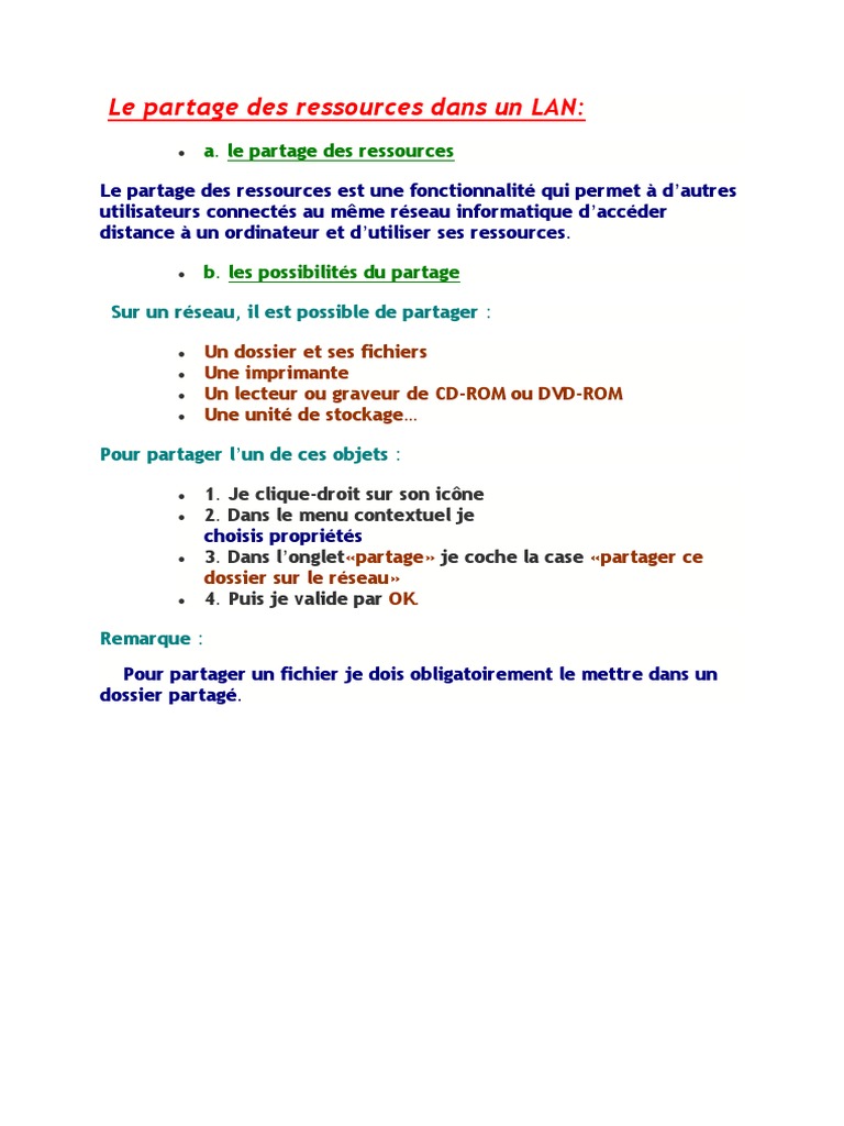 Vous montre comment connecter deux ordinateur et utiliser l'assistance a distance et connection bureau a distance. Mettre deux ordinateurs en reseua. C'est dans cet idee, que je.pdf. Mettre en réseau deux pc. Un réseau d'ordinateurs est un groupe de deux ou plusieurs ordinateurs connectés ensemble par un moyen de communication en commun pour que les données un réseau ad hoc peut aussi être utilisé pour fournir une connexion temporaire entre deux ordinateurs. Chez moi, j'ai une ordinateur de bureau (windows vista) et un laptop (windows 7) et une imprimante (hp) que je souhaite mettre en réseau. Pdf drive investigated dozens of problems and listed the biggest global issues facing the world today. Load more similar pdf files. Les utilitaires de réseau fournis avec microsoft windows , il est facile d'obtenir un réseau d'ordinateur à ordinateur a démarré , et la connectivité internet sur le réseau est également facile à configurer. .ordinateurs en reseau (pour suivre la video de cet article cliquez ici: Nécessaire pour créer un réseau local en rj45 sous windows xp, il suffit de : Cela peut vous permettre de partager des fichiers ou de jouer ensemble à des jeux vidéo ou encore d'imprimer sur une imprimante connectée sur un pc ou d'effectuer des sauvegardes croisées. Si votre ordinateur est déjà relié à un réseau informatique, veuillez communiquer avec votre responsable informatique avant d'effectuer ces.
